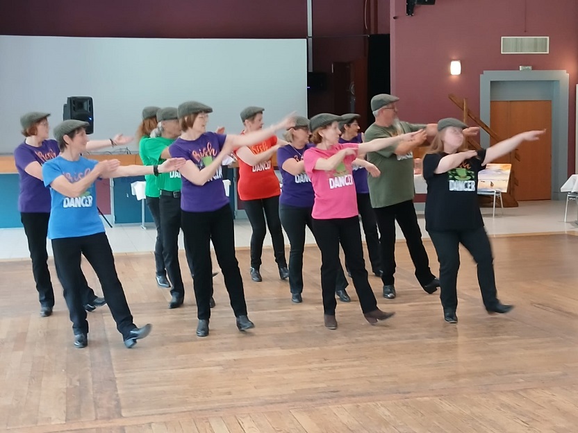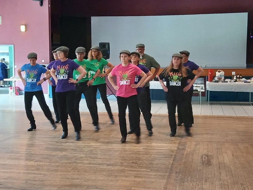 | Ce fut un grand moment de joie aussi bien chez les danseurs sur la piste que chez les spectateurs qui les ont encouragés. Bravo à tous les participants. Pour la suite nous avons revêtu nos tenues de danseurs irlandais ! Valérie a accompagné à la flute l'introduction de notre première danse Coastin'.