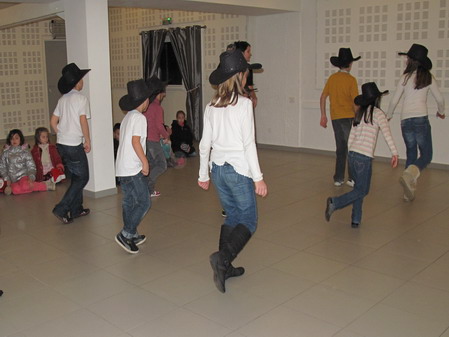| Comme promis, les enfants inscrits au stage de danse country ont pu présenter une petite démonstration de leur apprentissage. Ils ont été chaleureusement applaudis par des parents fiers de leur progéniture ainsi que par les monitrices et les autres enfants du périscolaire de Pournoy la Grasse. Enfants et parents volontaires se sont ensuite retrouvés sur la piste pour une initiation au Charleston Country. Bravo et merci à tous, rendez-vous est pris pour l'année prochaine.