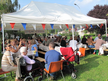 | Il y a des quartiers où il fait bon vivre, où l'amitié et la solidarité forgent des liens entre les habitants. C'est le cas du Ban du Patural l'Evèque à Montigny-lès-Metz qui fêtait ses 40 ans ce dimanche 7 septembre. Pour l'occasion les habitants se sont réunis autour d'une bonne table et à la fin du repas nous avons été invités à présenter une démonstration de danse country. Nous remercions Mr Krempt, président du comité de quartier, ainsi que tous ses amis et voisins pour leur accueil chaleureux. Après la démonstration de nombreux participants sont venus nous rejoindre pour faire quelques pas sur la piste. Quelle ambiance !!!
