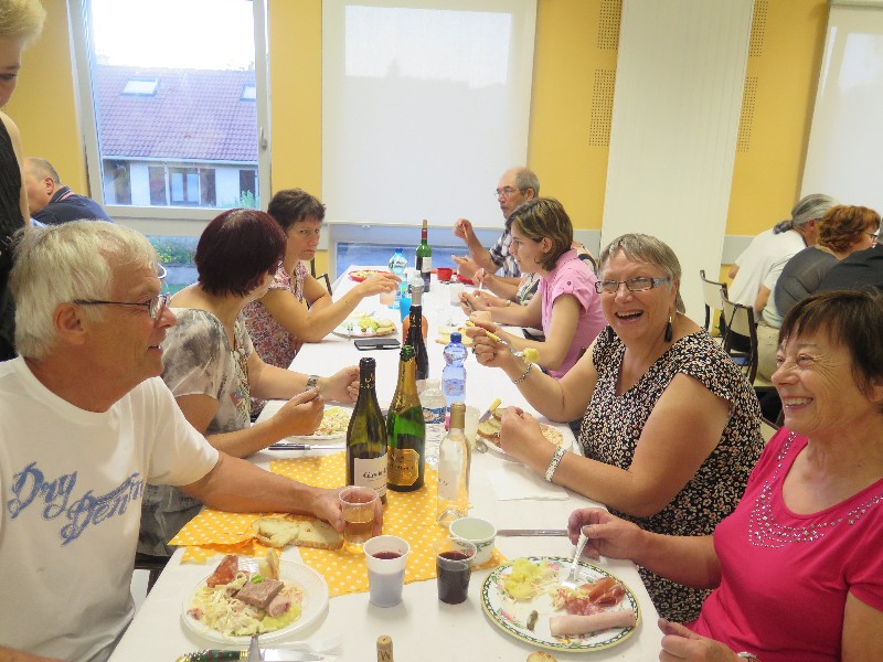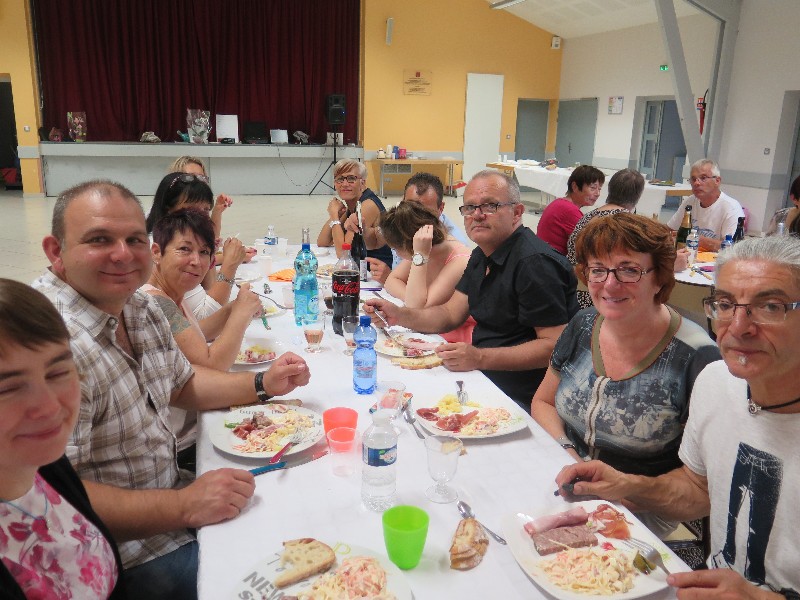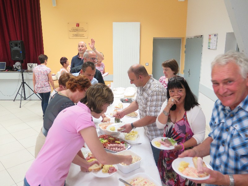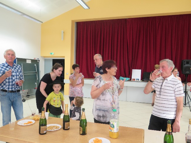 | Comme chaque année la saison se termine par un repas dansant à la salle communale de Louvigny. Tout le monde est prêt à faire la fête , en avant pour l'apéro...