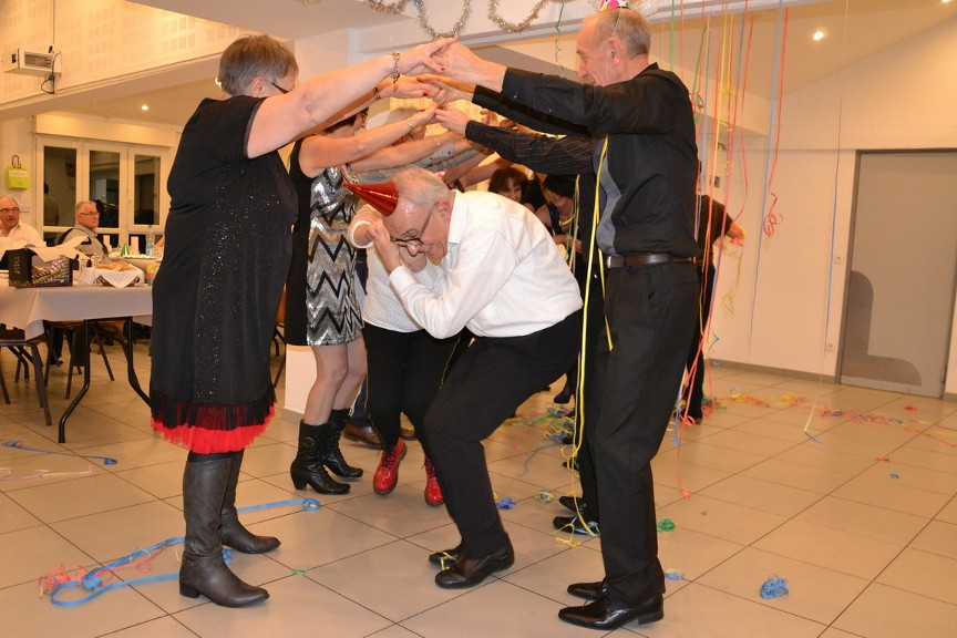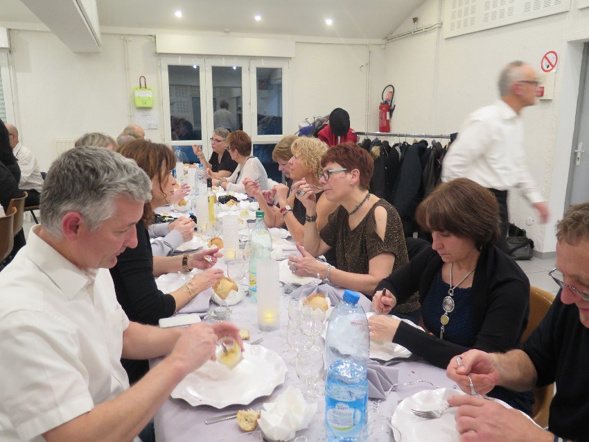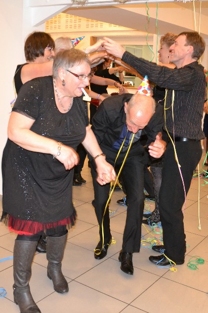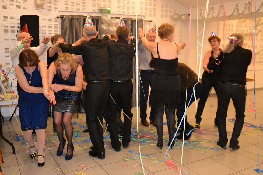 | Chers amis, Et nous voilà en 2017. Quelle belle fin d'année et quel beau début pour 2017, on peut dire que notre fête a été une réussite et ceci grâce à qui ? grâce à vous tous ! Sans vous pas de fête, chacun s'est investi afin que la soirée se déroule pour le mieux. Un beau travail d'équipe, merci à tous. La première personne à remercier est notre chef Daniel, sans lui et ses compétences pas de repas et de si jolies assiettes. Tout était succulent et servi à la bonne température .... peut-être un peu trop copieux , mais bien sûr il y a de plus gros mangeurs que moi et mon appétit d'oiseau. Merci à mes amies les encadreuses, elles font bien sûr de magnifiques encadrements mais elles sont également décoratrices, plieuses de serviettes, scribe, pâtissière, elles sont parfaites et me sont si chères. Merci à Pascale, Jo et Pat qui se sont époumonés à gonfler des ballons bien résistants, ont coupé taillé et peint les petits fagots et m'ont aidée à parcourir la ville à la recherche des ingrédients nécessaires pour faire la fête. Merci à toutes les petites mains qui se sont activées durant toute la soirée comme des elfes de maison; tout était débarrassé, lavé, rangé comme par magie. Merci à tous de m'avoir suivie dans mes folies sur la piste et d'avoir si pleinement participé aux initiations. Quel bonheur de voir ce beau groupe effectuer en commun quelques pas sur de jolies musiques. Bisous à tous et que le reportage de la fête commence !!! Sylvie. |