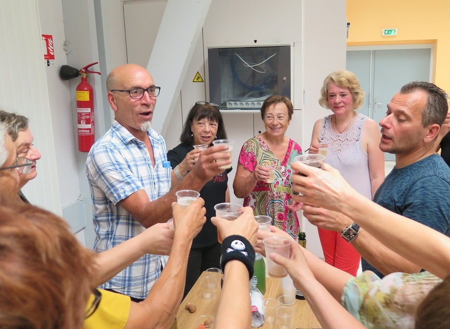 Un arrosage en l'honneur de Pascal qui fête son nouveau travail. |