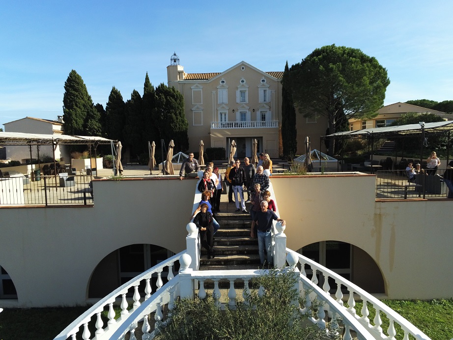 | En fin de soirée cetains se regroupent pour une photo souvenir destinée à l'album de Paulette et André que nous embrassons bien fort. Et puis, et puis ce fut samedi, le dernier jour, la dernière promenade, le dernier apéro, le dernier bal avec les Rusty Legs, les dernières photos, nous pourrions être tristes .... mais non un autre stage se profile à l'horizon !!!! En plus le soleil est là pour cette fin de stage, voilà de quoi nous donner le sourire. Le matin, pendant que certains révisent les 33 danses apprises durant la semaine d'autres préfèrent se promener dans les collines...