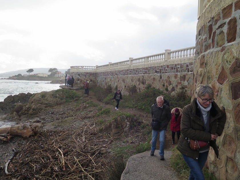 | Après cette excellente soirée animée par l'orchestre des Rusty Legs, vite au lit pour prendre des forces avant d'attaquer notre deuxième jour de stage. Le mardi a commencé par une matinée très studieuse en compagnie de Guylaine et de Kate. Même pas le temps de prendre des photos!!! Après un bon petit repas nous allons affronter le mauvais temps pour nous promener en bord de mer à St Aygulf. Même pas peur !!! |