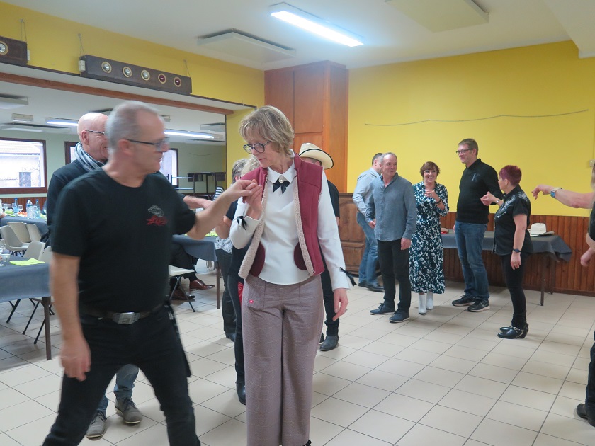 | C'est à l'occasion du repas offert par la municipalité à ses séniors que nous avons présenté une animation de danses country. Ce fut une belle surprise pour eux, ils nous ont comblés par leur intérêt et leurs applaudissements. A la fin de la prestation de nombreux convives nous ont rejoints sur la piste pour s'initier à quelques pas de danse. Nous adressons un grand merci pour leur accueil à toutes les personnes présentes. Très bel après midi à Rembercourt sur Mad.