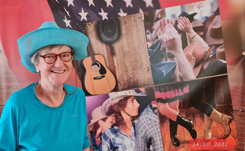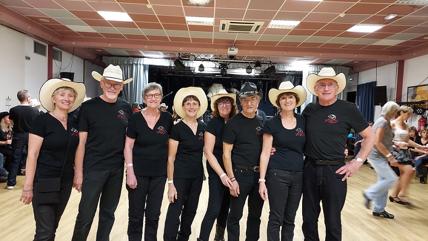 | Au centre de vacances Miléade avec l'orhestre Rusty Legs, le chanteur country Wayne Law et les chorégraphes Guillaume Richard, Kate Sala, Chrystel Durand et Darren Bailey.