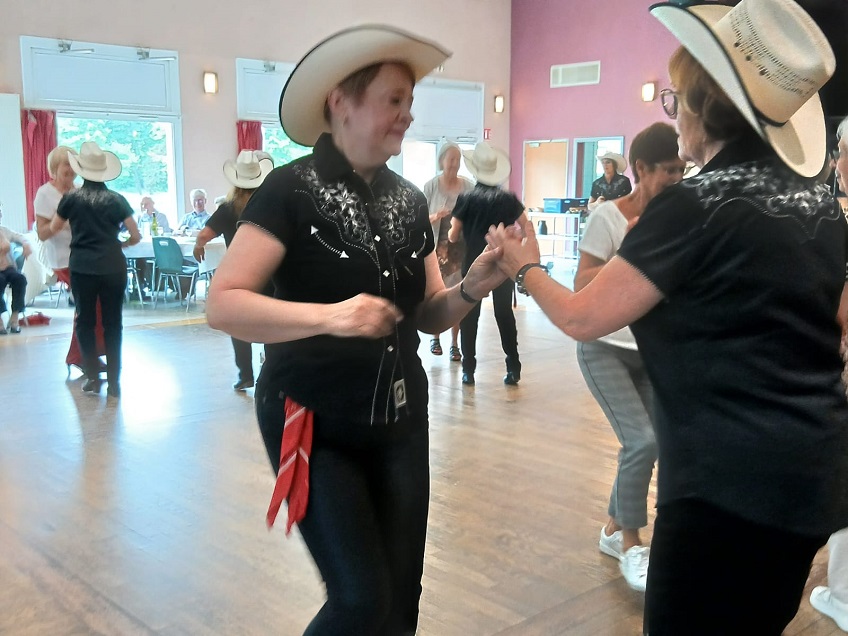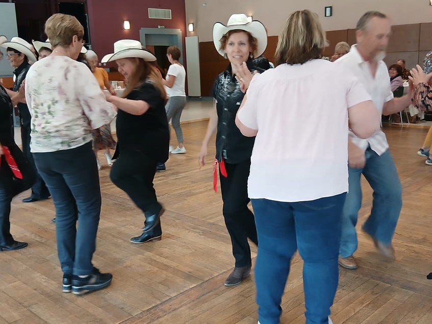 | Notre première partie country est terminée. C'est le moment pour aborder deux initiations : une danse en ligne sur la musique Stand By Me puis une danse en couple sur la musique Cotton Eyed Joe. |