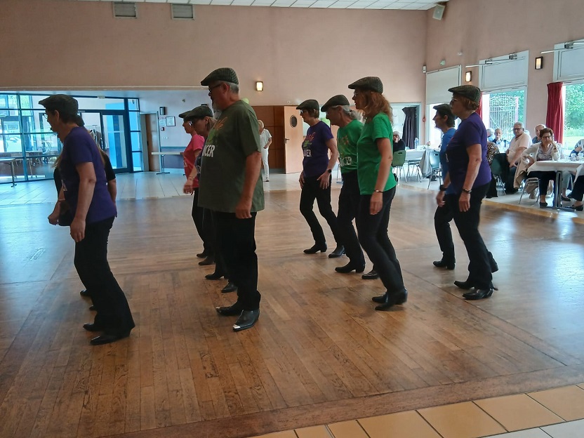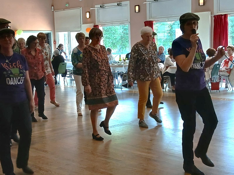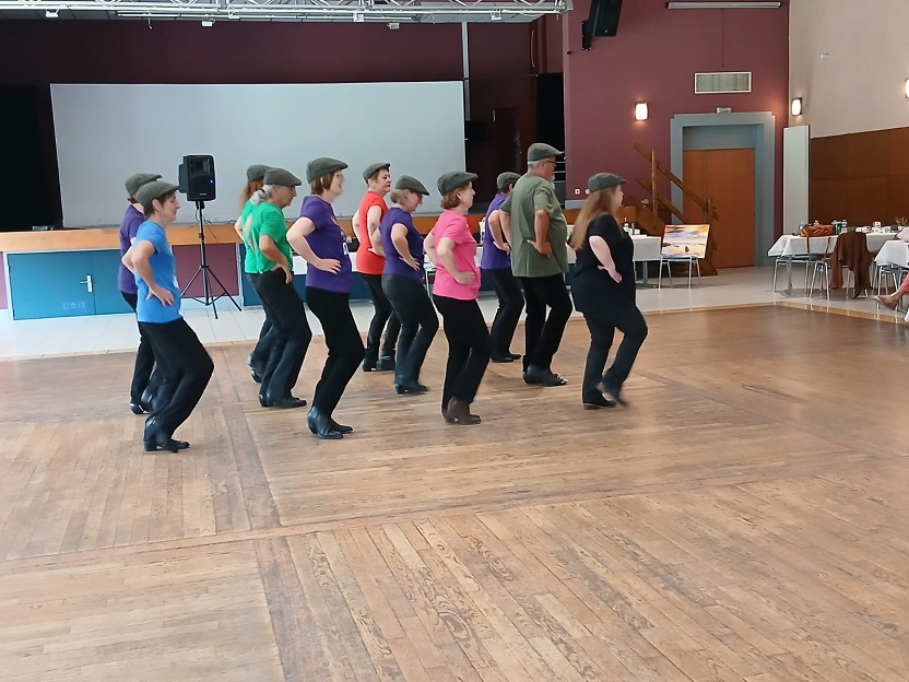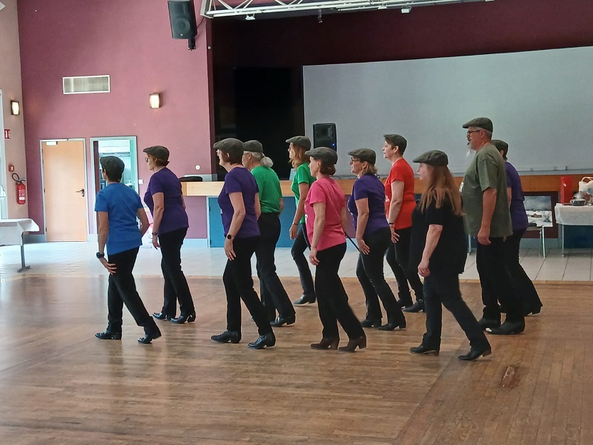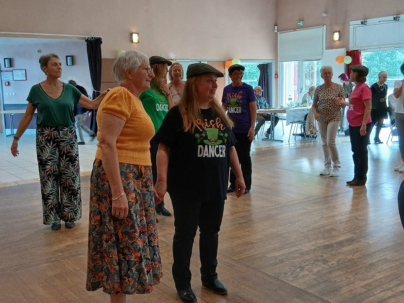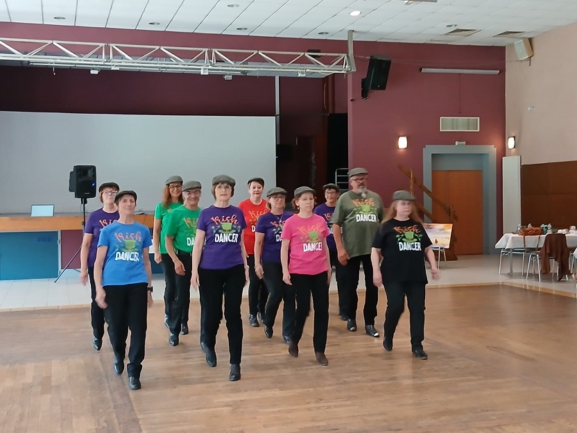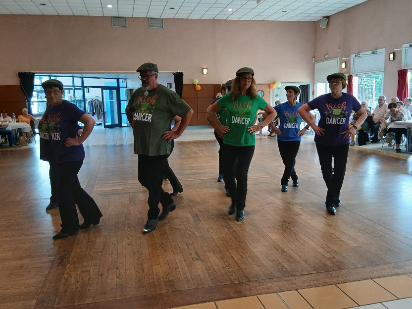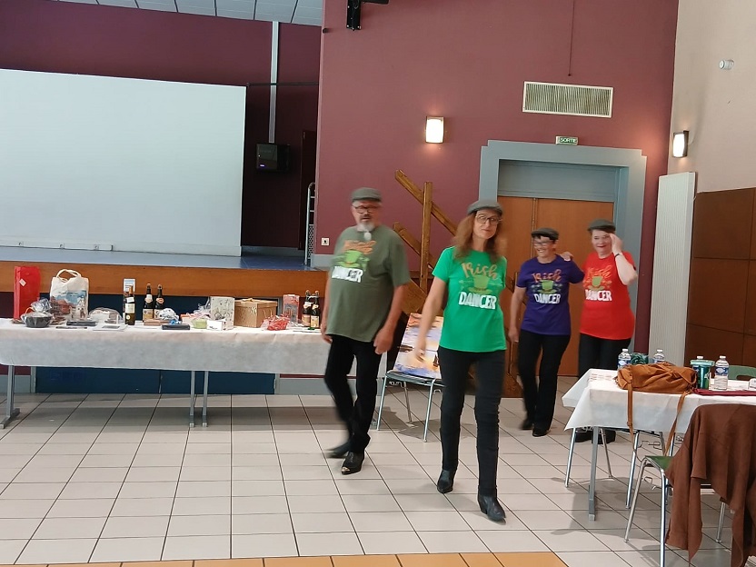 | Ce fut un grand moment de joie aussi bien chez les danseurs sur la piste que chez les spectateurs qui les ont encouragés. Bravo à tous les participants. Pour la suite nous avons revêtu nos tenues de danseurs irlandais ! Valérie a accompagné à la flute l'introduction de notre première danse Coastin'.