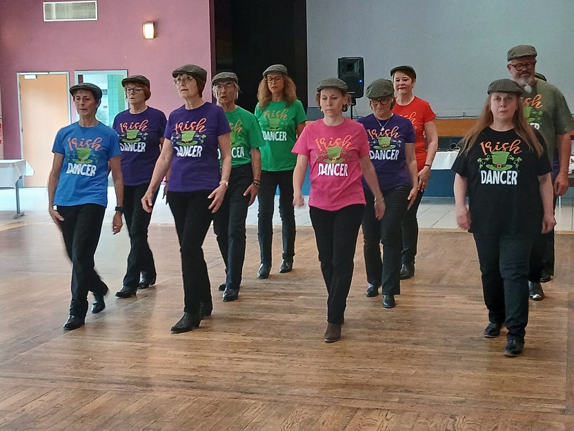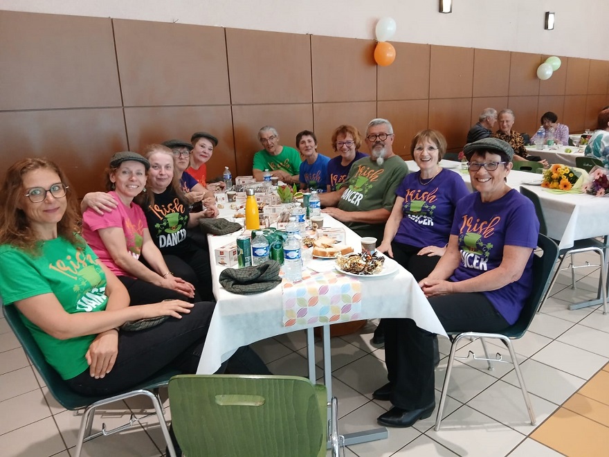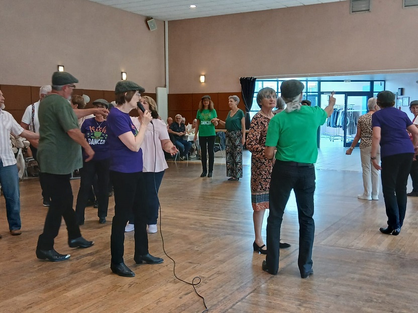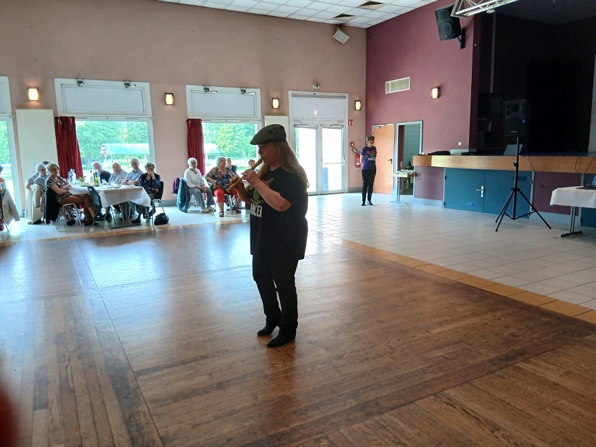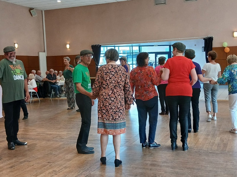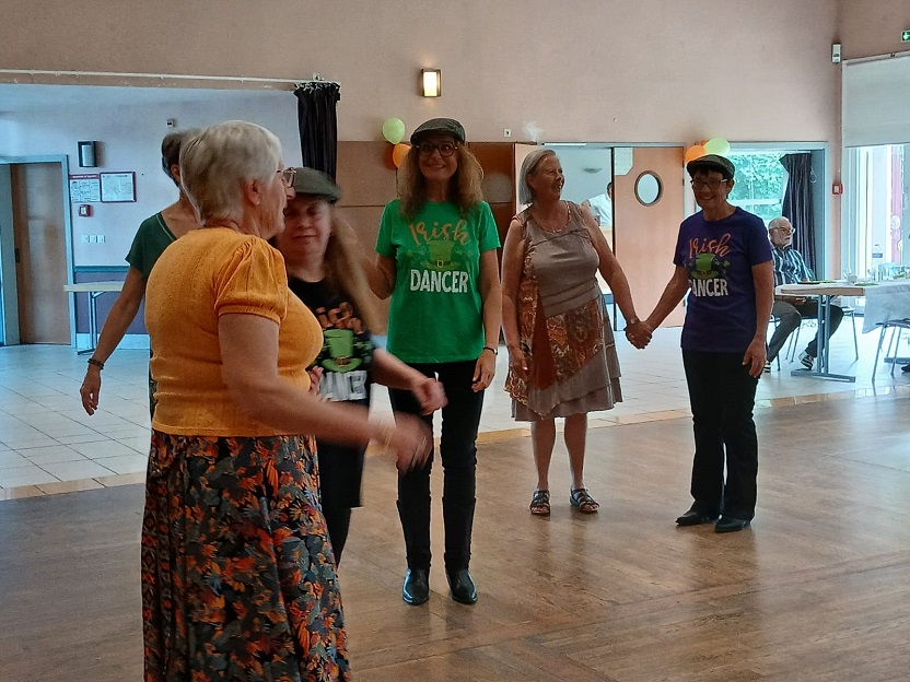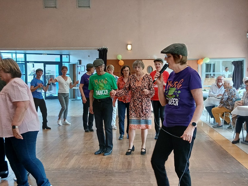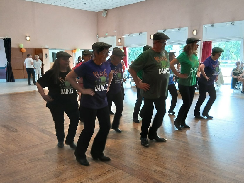 | Ce fut un grand moment de joie aussi bien chez les danseurs sur la piste que chez les spectateurs qui les ont encouragés. Bravo à tous les participants. Pour la suite nous avons revêtu nos tenues de danseurs irlandais ! Valérie a accompagné à la flute l'introduction de notre première danse Coastin'.