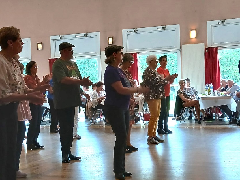 | Ce samedi 17 mai 2025 nous avons présenté quelques danses à Corny sur Moselle lors d'un repas organisé par l'Association des Séniors. Nous y avons reçu un accueil des plus chaleureux, les convives ont montré un vif intérêt pour notre prestation et surtout ont participé en grand nombre lorsque nous avons proposé quelques initiations. |
