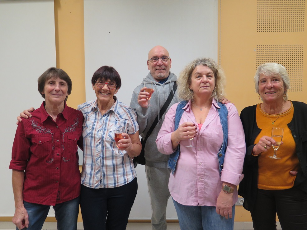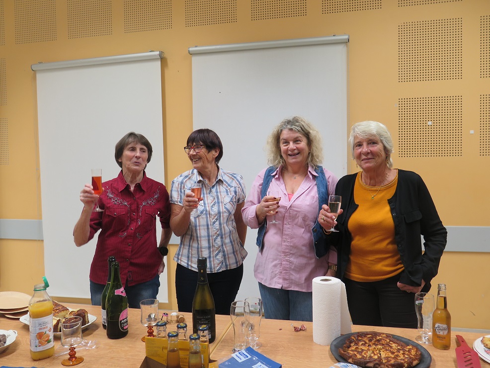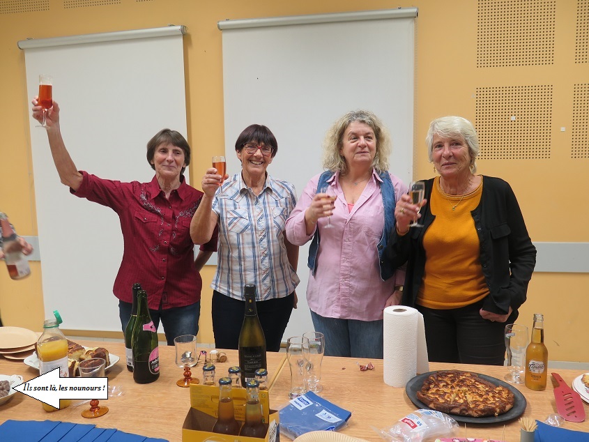 | Très belle journée ce mardi 11 novembre 2025 pour fêter les anniversaires de l'automne et lever nos verres en l'honneur de Christine, Chantal, Nathalie et France. JOYEUX ANNIVERSAIRES LES AMIES !!!!! Merci Mesdames, votre table est des plus accueillantes, vous nous avez bien gâtés ! Mais que vois-je? il y a aussi des nounours en guimauve, miam c'est un vrai festin !