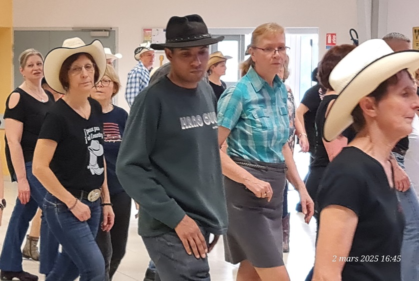 | Notre présidante Chantal prend la parole pour remercier tous les clubs qui nous ont fait l'honneur de participer à notre bal. Amis de l’Evasion de Vandoeuvre les Nancy --- Coco et Thierry --- Country Dancers 54 de Lunéville --- Country Station de Champigneulles --- Happy Feet de Bernecourt --- Howdy Country Dancers et Apac 57 de Metz --- Black and Blue de Sainte Barbe --- Papy François MJC de Joeuf --- Only Road 57 de Metz Vallières --- Rebel's Country Lor'N de Pagny sur Meuse --- Saulnois Country Dancers de Dieuze --- The Texas Dancers de Chesny --- The Bangs Of Boots de Lacroix sur Meuse --- West Country de Chavigny Merci à vous tous pour votre présence et la superbe ambiance que vous avez créée lors de cette journée. |