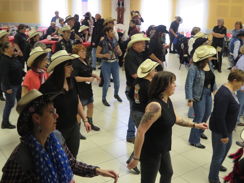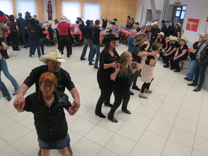 | Comme chaque année notre club organise un bal CD vers la fin de l'hiver. Comme chaque année de nombreux danseurs ont répondu présents et ont manifesté leur joie de danser tout au long de l'après midi par une ambiance chaleureuse et festive. Nous remercions les membres des clubs voisins et amis qui sont venus partager ce moment avec nous : -Amis de l'évasion de Vandoeuvre les Nancy -Country Club Dombalois -Country Rock de Pulnoy -Country Station de Champigneulles -Club Mustang de Domjevin -Happy Feet de Bernecourt -Lucky Country Tromblaine -Only Road de Vallières -Rebel's Lor'n de Pagny sur Meuse -Saulnois Coutry Dancers de Dieuze -South Country Valley de Demange aux Eaux -Texas Dancers de Chesny -The Bangs Of Boots de Lacroix sur Meuse -West Country de Chavigny -ainsi que nos amis Sylviane et Jean Luc