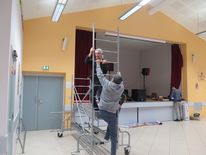 le jour J ! Chacun à son poste pour finir de tout installer. |