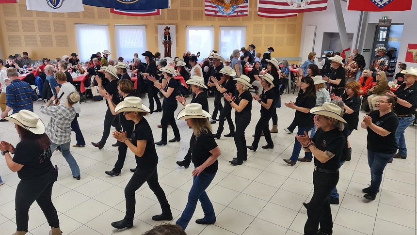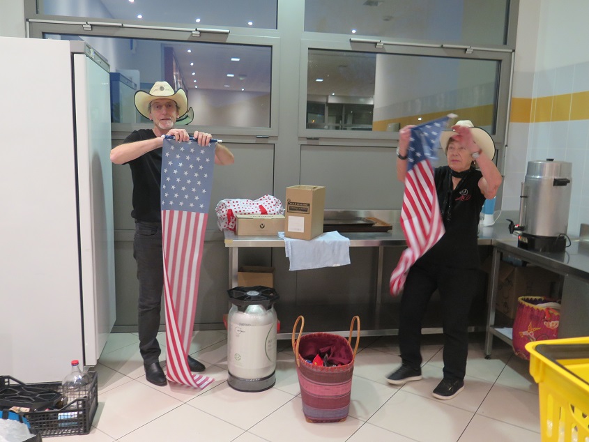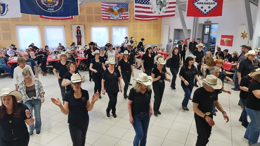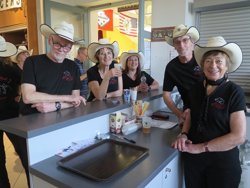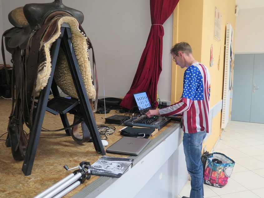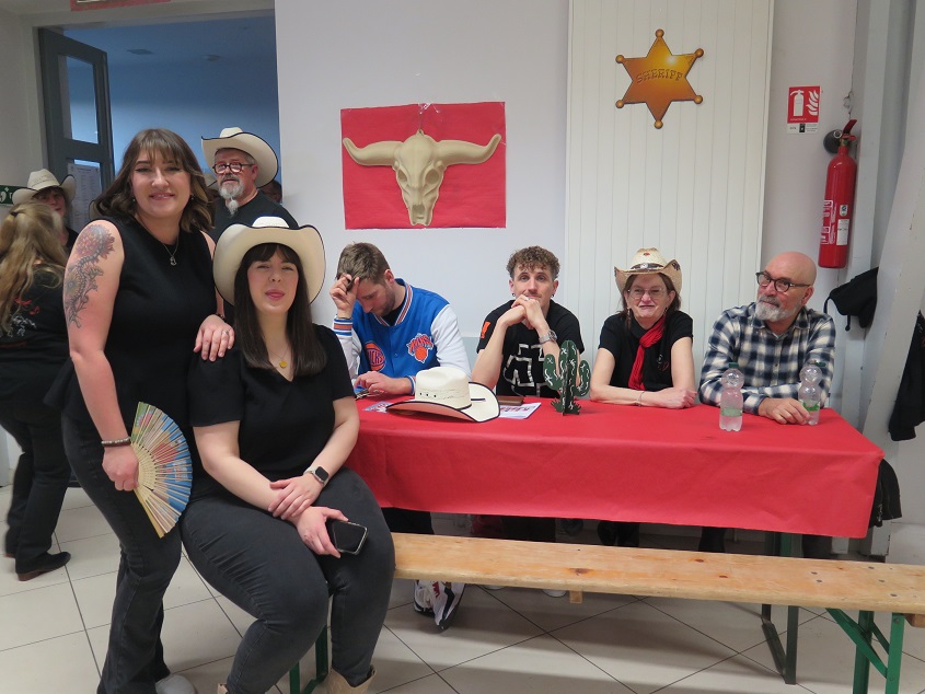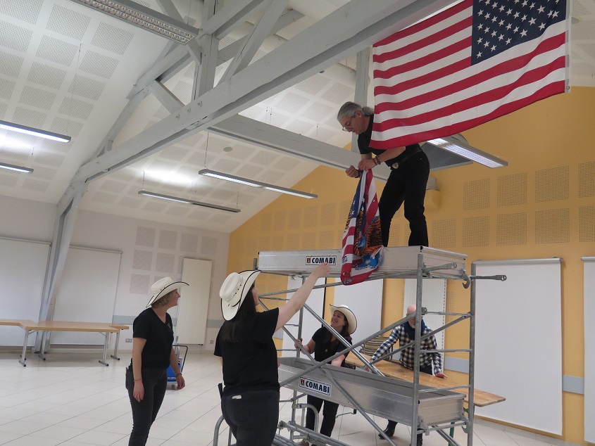 | Organiser un bal country ça se prépare. Bien avant avec l'élaboration des flyers et tracs, des playlist et plannings, et puis la veille pour transformer une salle des fêtes banale en salle style Ouest américain pour accueillir au mieux les passionnés des clubs voisins. Peu à peu la salle se transforme ..... |