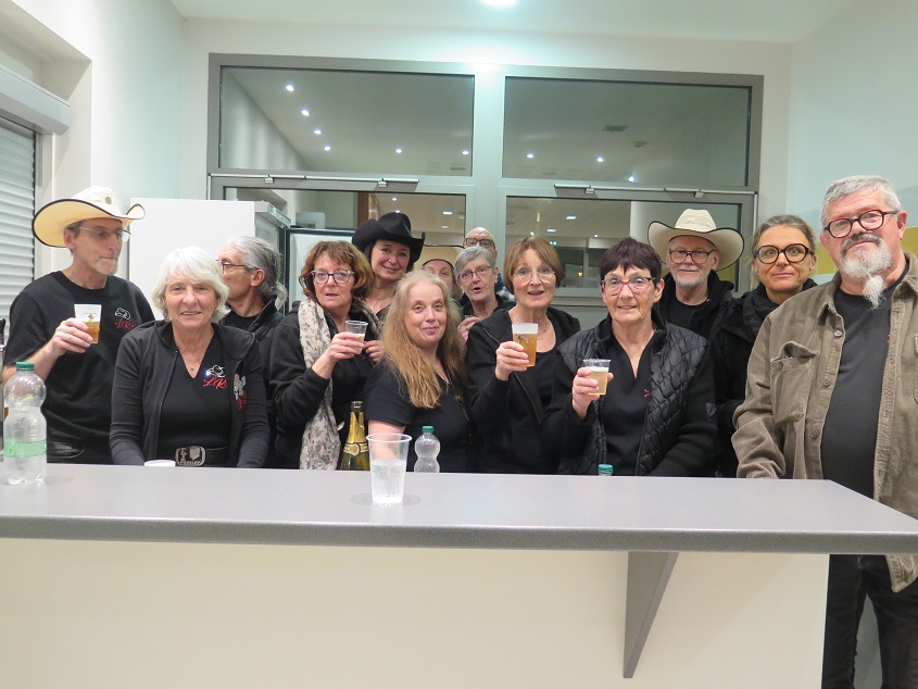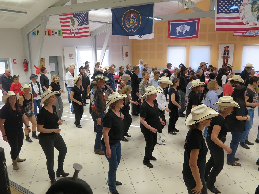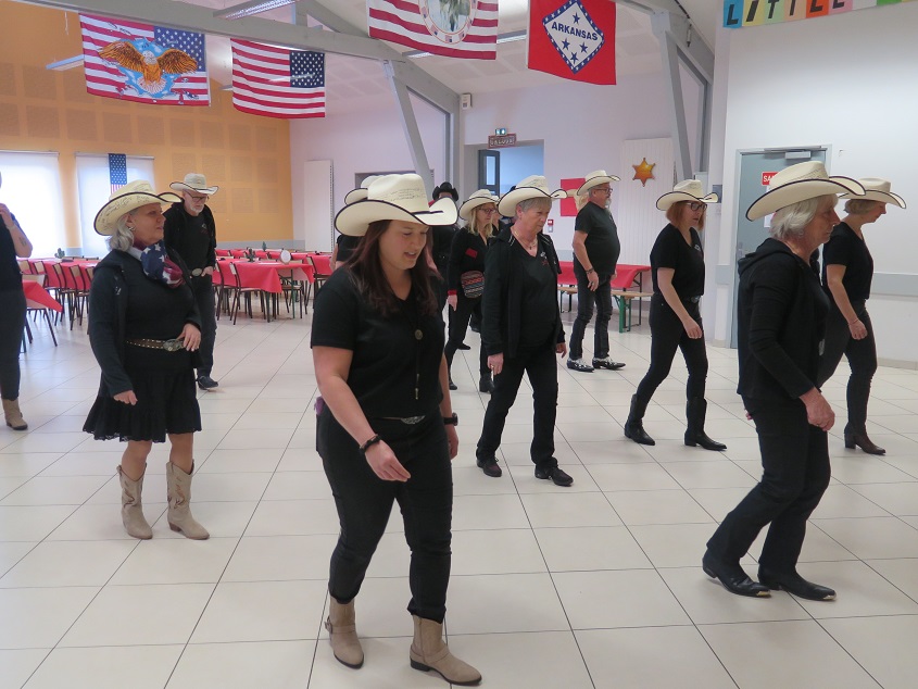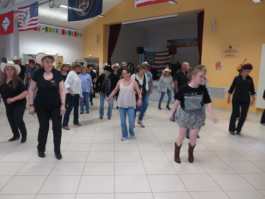 | Les heures passent vraiment trop vite ! C'est déjà la fin de notre après midi country, les invités repartent les jambes bien fatiguées et la tête emplie de belles musiques, on le souhaite. Maintenant c'est le moment de tout remettre en place et de discuter du futur bal que l'on fera l'an prochain :-) Super les Little Rock vous étiez au top !!!!!! |