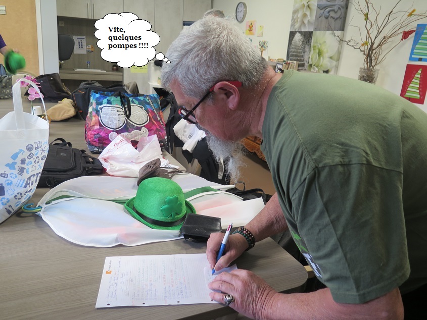 | Et une petite initiation pour terminer l'après midi. Merci à tous les résidents pour leurs sourires et leur participation bien stimulante tout au long de cette démonstration. |