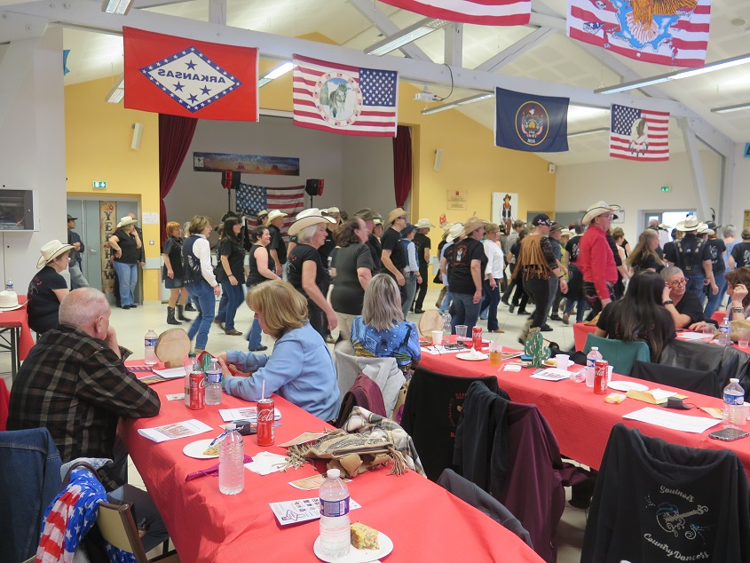 | Comme chaque année notre club organise un bal CD vers la fin de l'hiver. Comme chaque année de nombreux danseurs ont répondu présents et ont manifesté leur joie de danser tout au long de l'après midi par une ambiance chaleureuse et festive. Nous remercions les membres des clubs voisins et amis qui sont venus partager ce moment avec nous : -Amis de l'évasion de Vandoeuvre les Nancy -Country Club Dombalois -Country Rock de Pulnoy -Country Station de Champigneulles -Club Mustang de Domjevin -Happy Feet de Bernecourt -Lucky Country Tromblaine -Only Road de Vallières -Rebel's Lor'n de Pagny sur Meuse -Saulnois Coutry Dancers de Dieuze -South Country Valley de Demange aux Eaux -Texas Dancers de Chesny -The Bangs Of Boots de Lacroix sur Meuse -West Country de Chavigny -ainsi que nos amis Sylviane et Jean Luc